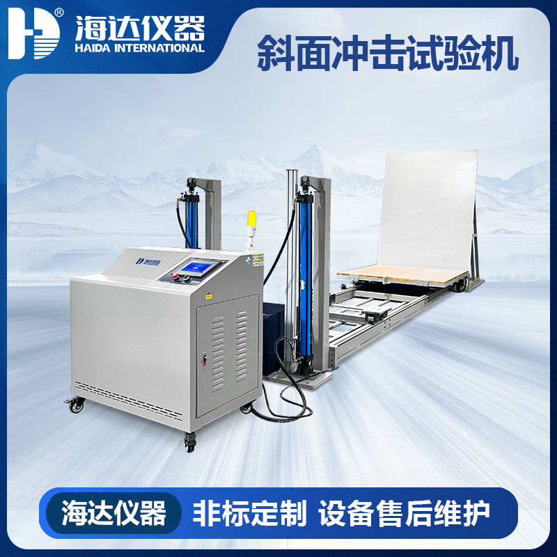 海達儀器HD-A523 斜面沖擊試驗儀,模擬了產品包裝在實際環境中抗沖擊損壞的能力,如搬運、貨架的堆疊、電機的滑動、機車的裝卸、產品的運輸等,本斜面沖擊臺也可作為科研機構、大中專院校、包裝技術測試中心、包裝材料制造廠以及運輸部門等機構進行斜面沖擊的常用試驗設備。